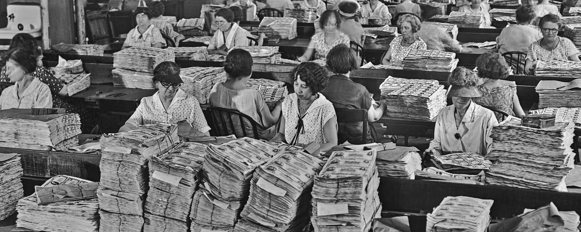 Bank notes are checked in 1929 at the US Bureau of Engraving and Printing. Photograph: FPG/Getty Image
