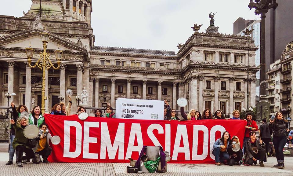 Pour contribuer à la collecte internationale de fonds pour les campagnes du forum féministe contre le G20, voir : https://www.gofundme.com/feministas-vs-g20
