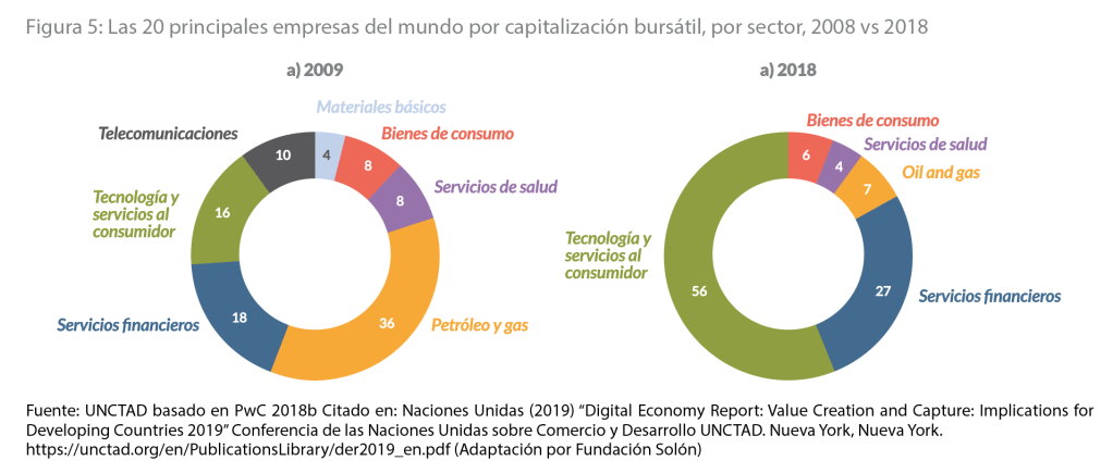 Como se mencionó al principio, debido a la falta de consenso sobre la definición y la cobertura del comercio electrónico a nivel internacional, en particular en la OMC, la ausencia de normas aplicables internacionalmente sobre el comercio digital ha tenido un impacto significativo en la falta de regulaciones sobre el crecimiento astronómico de empresas de tecnología, finanzas y servicios al consumidor vinculadas al comercio digital. Si bien la OMC no es la única responsable, el acuerdo de prorrogar la moratoria sobre la imposición de derechos de aduana en el comercio electrónico desde 1998, ha dejado en libertad para que cada uno aplique la definición o interpretación que más le favorece. Varios países han optado por avanzar y suscribir acuerdos regionales de libre comercio y otros sistemas de regulación en torno al comercio digital, mientras la OMC ha estado casi paralizada debido a los graves problemas en torno a su mecanismo de solución de controversias. El mandato de los coorganizadores del pequeño grupo de negociación de la OMC sobre comercio electrónico es presentar pronto una propuesta de consenso al respecto. En la siguiente sección profundizaremos en el debate y la situación actual de las propuestas, las normas y reglamentos existentes en torno al comercio electrónico. De momento, nos adentramos en el mundo de la economía de las plataformas digitales.
