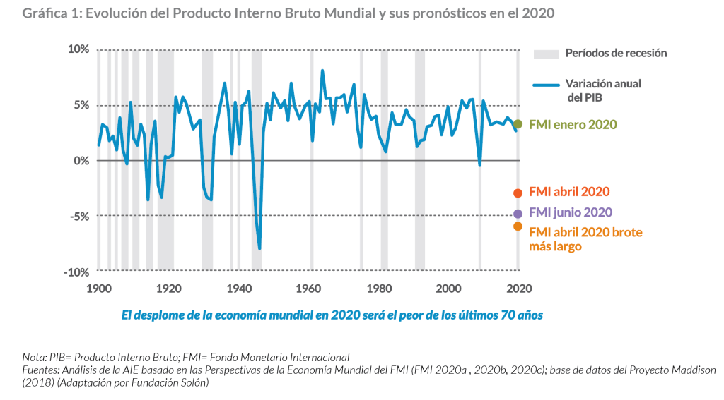 La contracción de la economía mundial en el 2020 afectó a todas las actividades del sector energético. El Fondo Monetario Internacional (FMI) pasó de pronosticar un incremento positivo a nivel mundial del 3,3% del Producto Interno Bruto (PIB) para el 2020, a estimar un decrecimiento de -3% que luego cayó a -4,9% para junio del 2020. En la actualidad se estima que el 2020 la economía mundial se contrajo entre un 4,4% y un 4,6%.