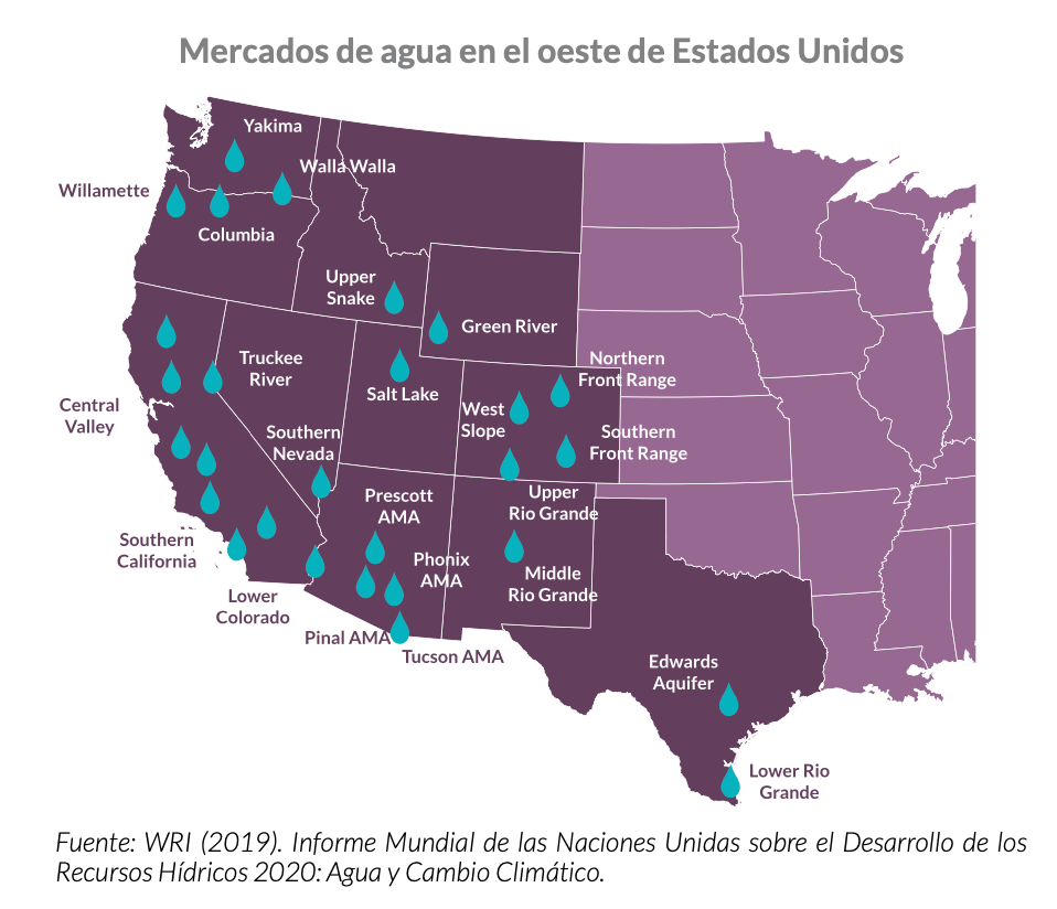 La propuesta de establecer mercados de agua no es nueva. Desde hace décadas existe en el oeste de Estados Unidos, Chile, Sudáfrica y Australia. Sin embargo, ahora cobra un nuevo impulso por el agravamiento del estrés hídrico que viven regiones del planeta debido a la mala gestión de los recursos, la contaminación y el cambio climático.