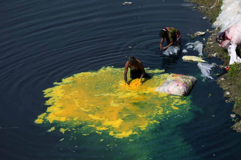 Bangladesh se ha caracterizado en las últimas décadas por ser el mayor proveedor de costura textil después de China, emitiendo cada año 1.2 billones de toneladas de gases de efecto invernadero[2]. Para la producción de ropa de forma rápida y económica, la industria consume bastante agua, además de utilizar tintes y productos químicos tóxicos que luego son liberados en los ríos cercanos, contribuyendo así a la degradación de los ecosistemas de la región. En consecuencia, el río Turag es uno de los sistemas fluviales más contaminados del mundo porque recibe 2 millones de metros cúbicos de aguas residuales de alrededor de 7000 industrias, donde además de fábricas de ropa existen industrias farmacéuticas, de curtiembres, teñido, pulpa, papel, baterías, metal, pintura y alimentos congelados.