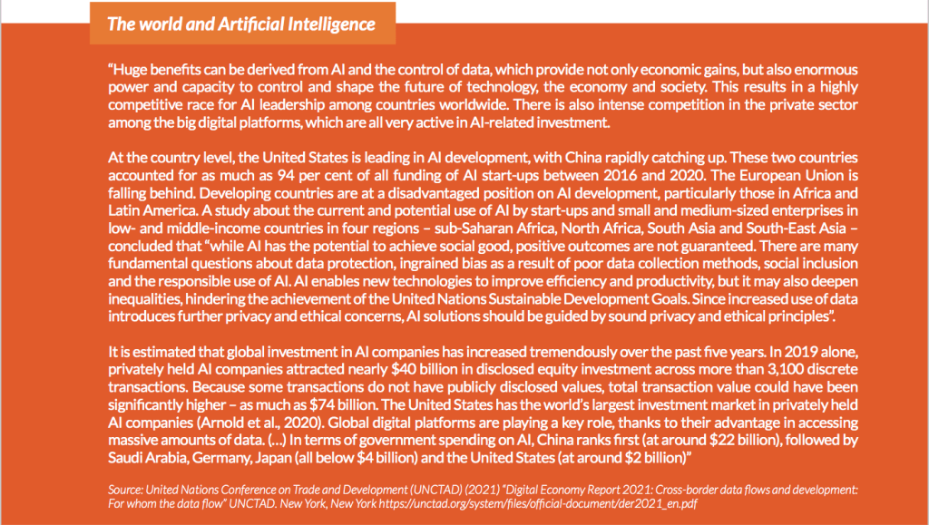 It has also become a global interest, the UNCTAD (United Nations Conference on Trade and Development) shows that countries have realized the significance and potential that comes with being the leader in this field of technology and as such have been investing resources.