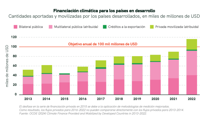 En 2009 durante la COP15 de Copenhague los países desarrollados hicieron la promesa de recaudar 100.000 millones de dólares por año hasta 2020 para ayudar a los países en desarrollo a enfrentar el cambio climático. Esta promesa de “mayor apoyo financiero, nuevo, adicional, adecuado y previsible” quedó consignada en el Acuerdo de Cancún con el término de “movilizar y proveer” 100.000 millones de dólares anuales hasta 2020 lo que significó que los países desarrollados no se comprometían a suministrar la totalidad de esos fondos, sino que “movilizarían” esa suma a través de donaciones, recategorización de Ayuda Oficial al Desarrolló (AOD), préstamos, mercados de carbono e inversión privada.
