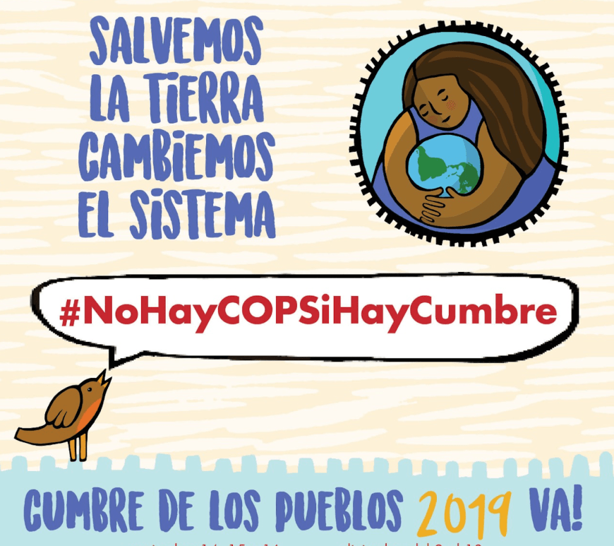 Por Cumbre de los Pueblos – Chile 10 December 2019 La cumbre de los Pueblos emitió una declaración pública luego de su encuentro realizado los días 02 al 07 de diciembre en Santiago (Chile) y que convocó a integrantes de más un centenar de organizaciones de diversas nacionalidades y movimientos sociales. La Cumbre de los Pueblos es un encuentro que congrega a representaciones e integrantes … Continue reading Declaración Pública Cumbre de los Pueblos
